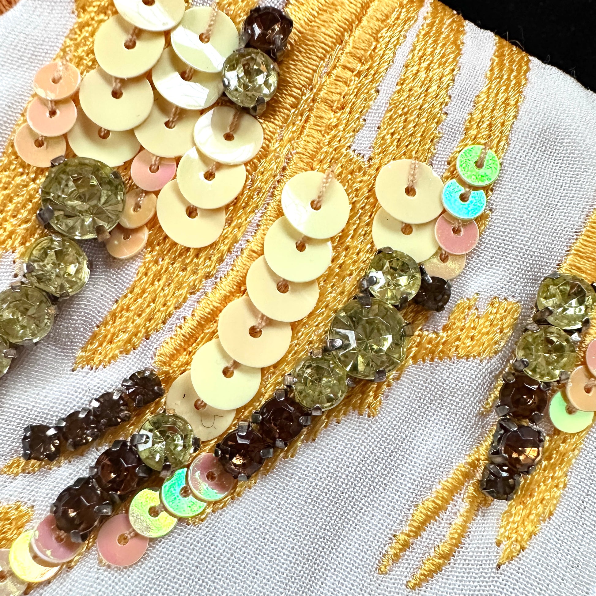 シルク素材と手縫いの繊細な仕上げが、作品全体の美しさを引き立て、目を引く独特で雰囲気のある作品を作り出しています。